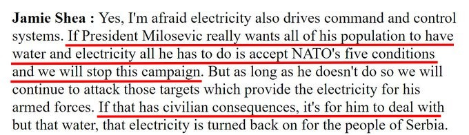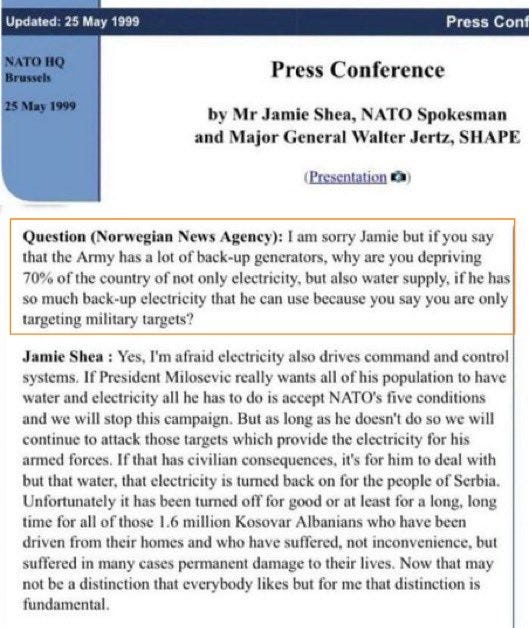 いつものように、私たちは西側の不快な偽善に直面しています。99年のセルビアでのように、NATOのスポークスマン、ジェイミー・シェアが述べた通り: