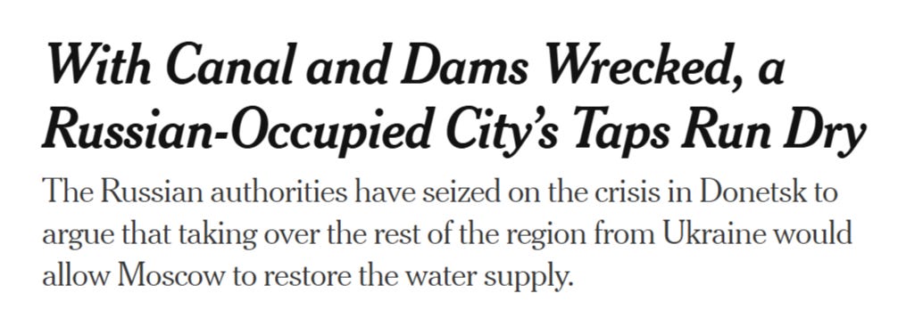 昨年、NYTでさえこれについて報じましたが、この破産した新聞は自然に運河破壊の犯人に名前を付けることを拒否し、単に「ロシアの攻勢中に破壊された」と述べることで有名なガザの「受動態」技術を使用しました: